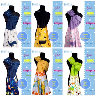 Gendongan dari cuddle me ini contohnya. Gendongan bayi dengan 2 buah ring yang menempel pada salah satu ujungnya ini secara penampilan mirip seperti gendongan kain yang selempang tradisional tapi dengan standar keamanan dan kenyamanan yang lebih baik. Gendongan ini bisa didapatkan dengan harga mulai dari rp 100 ribuan di pasaran dengan beberapa merek pilihan seperti. Kedua ring ini berfungsi sebagai simpul untuk mengikat gendongan.